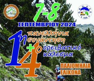 Ο σύλλογός μας θα συμμετάσχει στο 4ο Ορειβατικό κάλεσμα του Α.Χ.Ο.Λ. Βοιωτίας. Παράλληλα, θα πραγματοποιηθεί και η 1η πανελλήνια συνάντηση της Ο.Φ.Ο.Ε.Σ.Ε. (Ομοσπονδία Φυσιολατρικών Ορειβατικών Εκδρομικών Σωματείων Ελλάδος) στο χώρο κατασκηνώσεων στην Παλιομηλιά Ελικώνα. Την Κυριακή θα πεζοπορήσουμε όλοι οι σύλλογοι μαζί, μια διαδρομή 10 χλμ. με βαθμό δυσκολίας 1+ προς την Λάκκα Μεγάλης Λούτσας, Καψάλα, Ρονιές, με τελικό προορισμό το Ζερίκι.